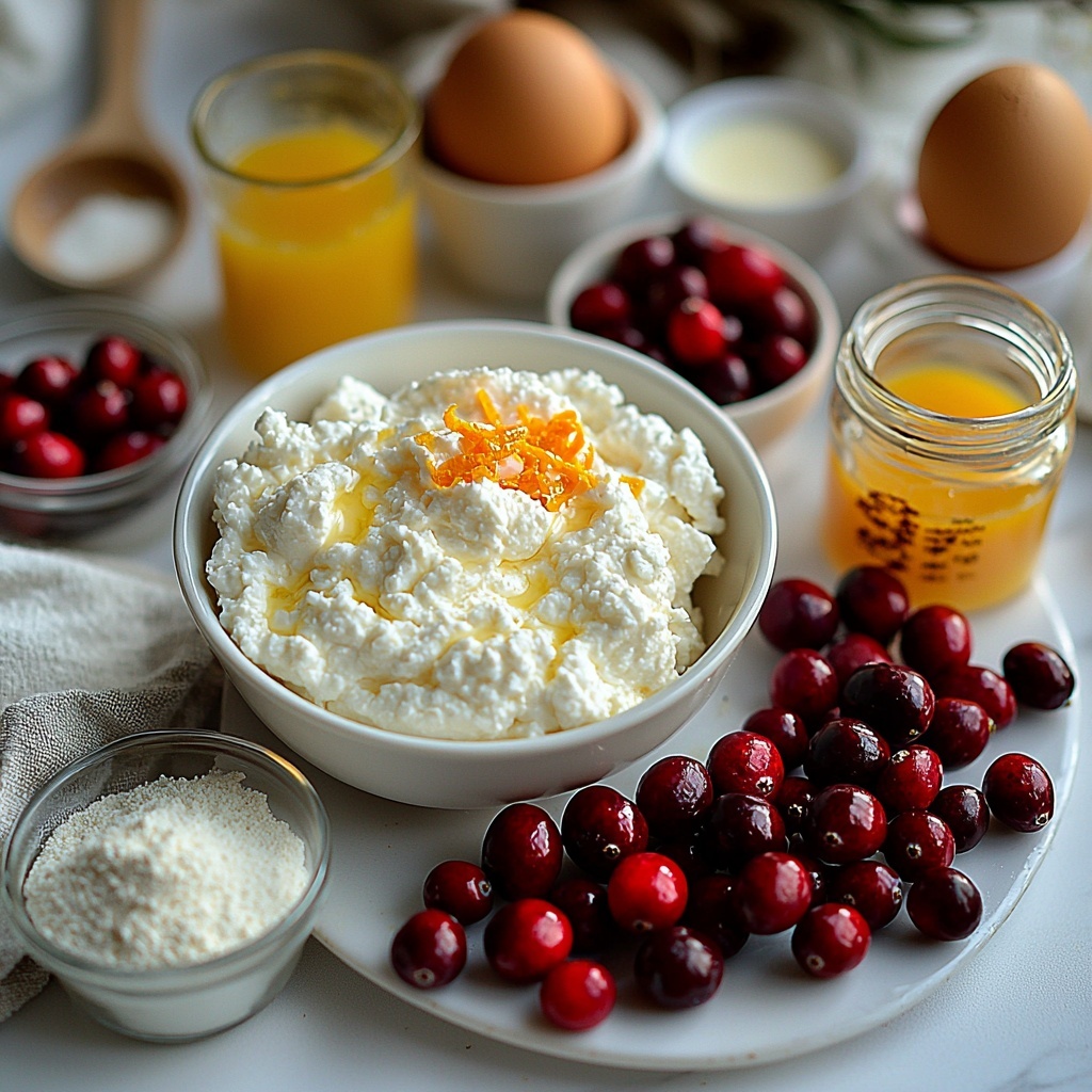 Each ingredient in this recipe plays a crucial role in crafting those irresistibly soft muffins with vibrant flavor and texture. From the creamy ricotta to the fresh cranberries and aromatic orange zest, every component is simple but essential, coming together to make magic happen in your mixing bowl.