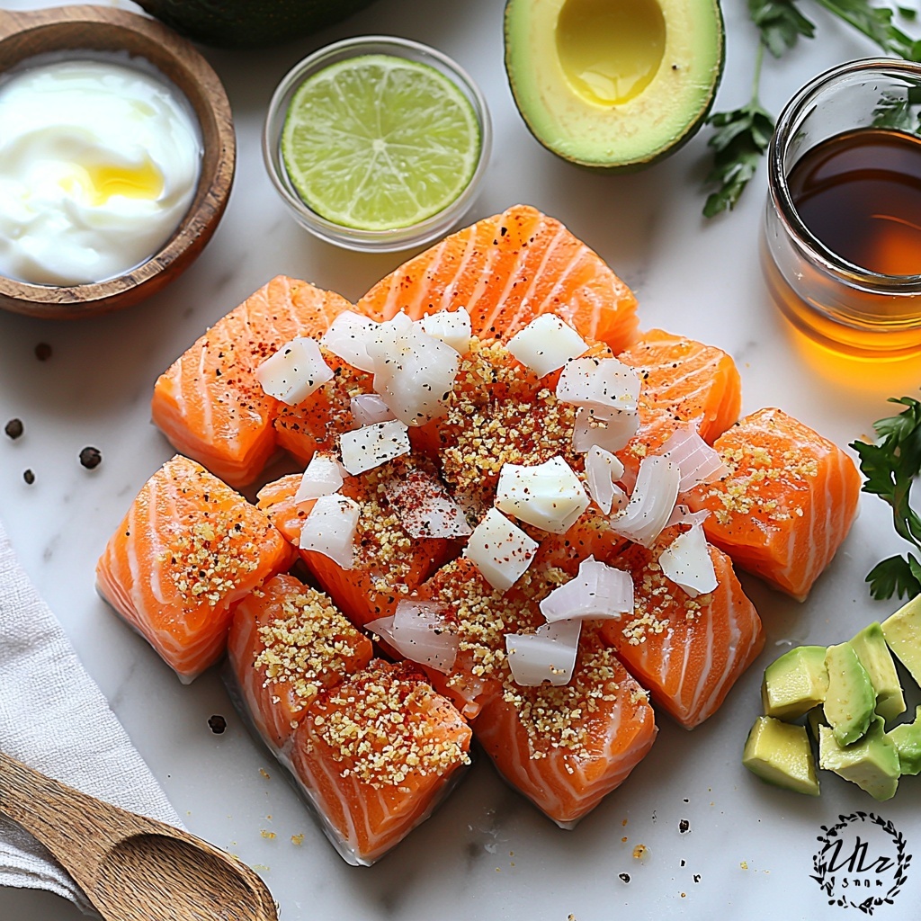 • 1 small onion: Chopped finely for a sweet and slightly sharp undertone that complements the salmon perfectly.
