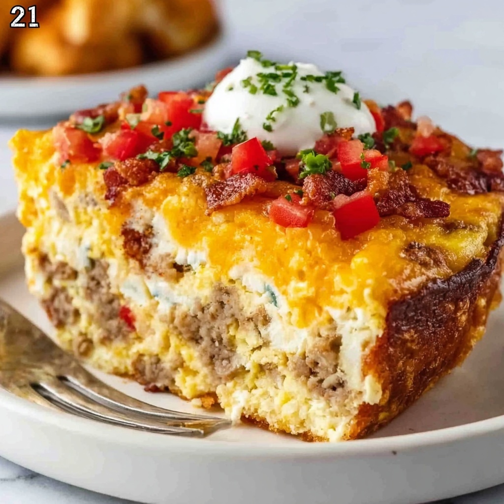 Adding simple garnishes like fresh chopped chives, a sprinkle of parsley, or a dollop of sour cream can elevate this sausage breakfast casserole recipe instantly. These fresh touches add color contrast as well as bursts of brightness to each cheesy, savory bite.