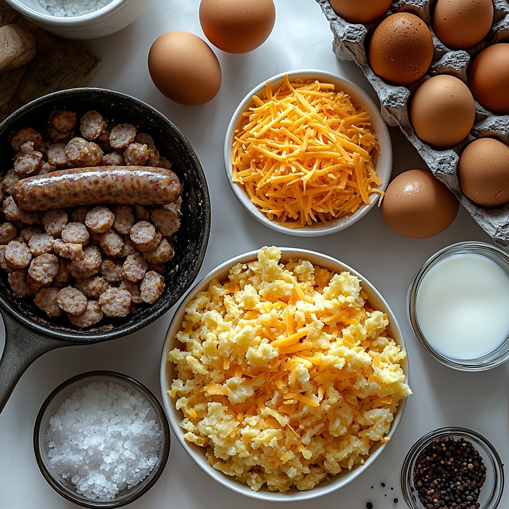 This Sausage Breakfast Casserole Recipe uses simple yet essential ingredients that come together to create a balanced and delicious meal. Each component plays a key role in building flavor, texture, and color, making the final dish something truly special.