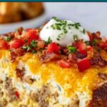 A hearty and delicious Sausage Breakfast Casserole featuring savory browned breakfast sausage, crispy hash browns, fluffy eggs, and melted cheddar cheese baked to golden perfection. Perfect for a family brunch or make-ahead breakfast.