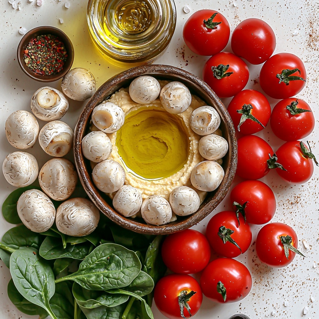 Gathering these straightforward yet essential ingredients is the first step to creating your own Savory Mushroom, Tomato, Spinach, and Hummus Breakfast Bowls Recipe. Each component plays a unique role, whether it’s providing a burst of vibrant color, a layer of tender texture, or a burst of savory flavor.
