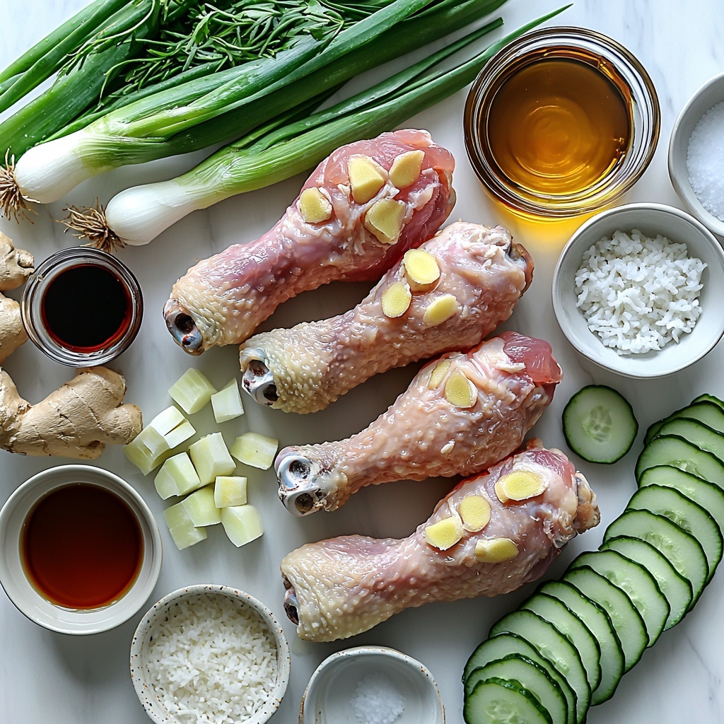 This Savory Poached Chinese Chicken with Ginger Scallion Sauce is a flavorful and tender dish featuring poached chicken drumsticks infused with ginger and scallions, served with a rich, aromatic sauce. Perfectly paired with steamed white rice and fresh cucumbers, this recipe offers a classic, comforting Chinese-inspired meal that’s quick to prepare in just 40 minutes.