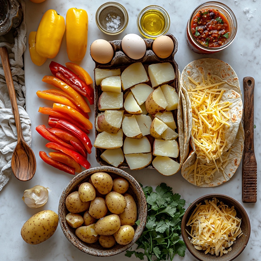 Lay your tortillas flat, then spoon a generous amount of the veggie-egg mixture down the center of each. Add a hearty scoop of refried black beans, sprinkle shredded smoked gouda cheese on top, and if you love a pop of freshness, scatter some chopped cilantro. Roll each up tightly into a burrito and wrap individually in foil to keep everything warm and compact.