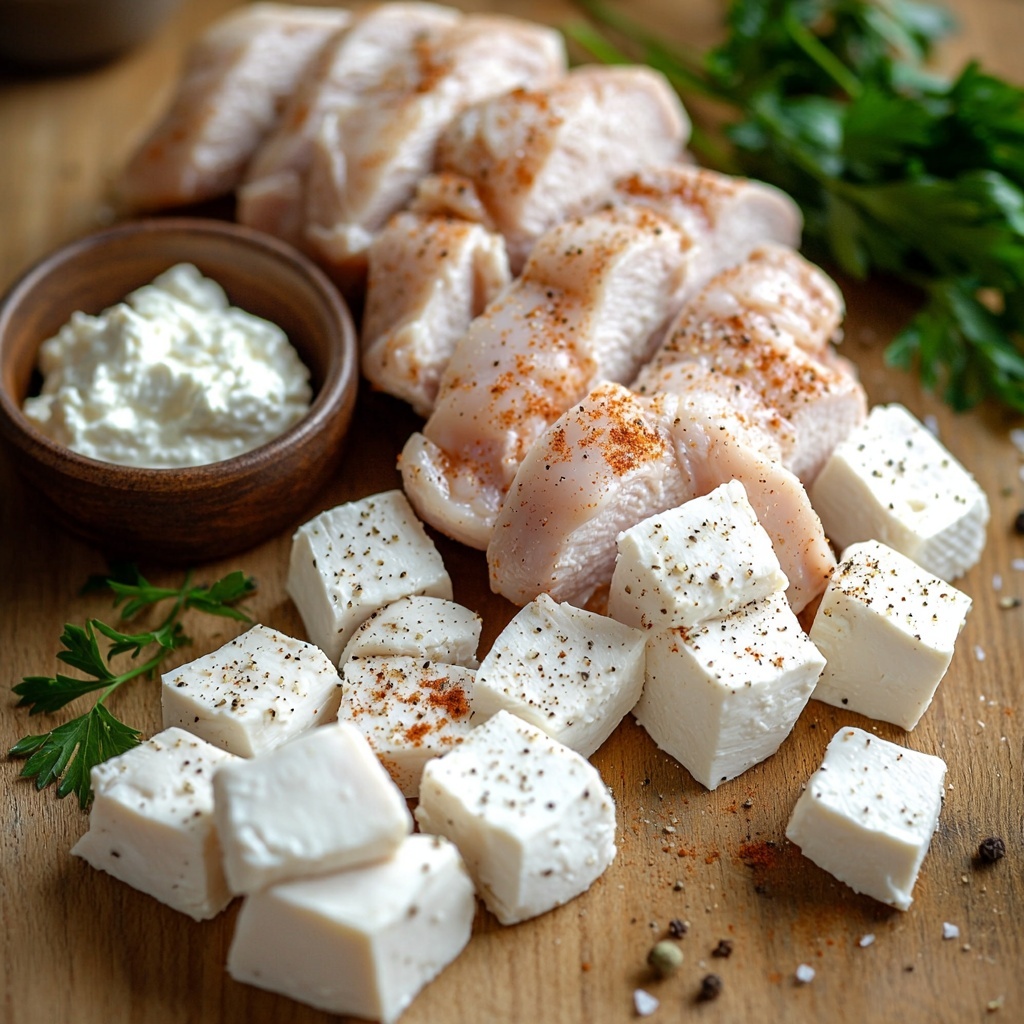 - 8 oz cream cheese (cut into large cubes): Creates a creamy, dreamy texture that coats the chicken perfectly.