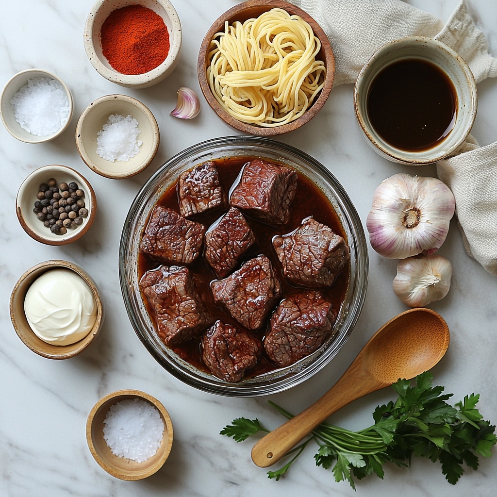 Gathering the right ingredients is the first step to achieving that perfect balance of richness and comfort in this dish. Each component plays a pivotal role, from the tender beef that melts in your mouth to the savory broth and luscious sour cream that create that iconic smooth sauce.