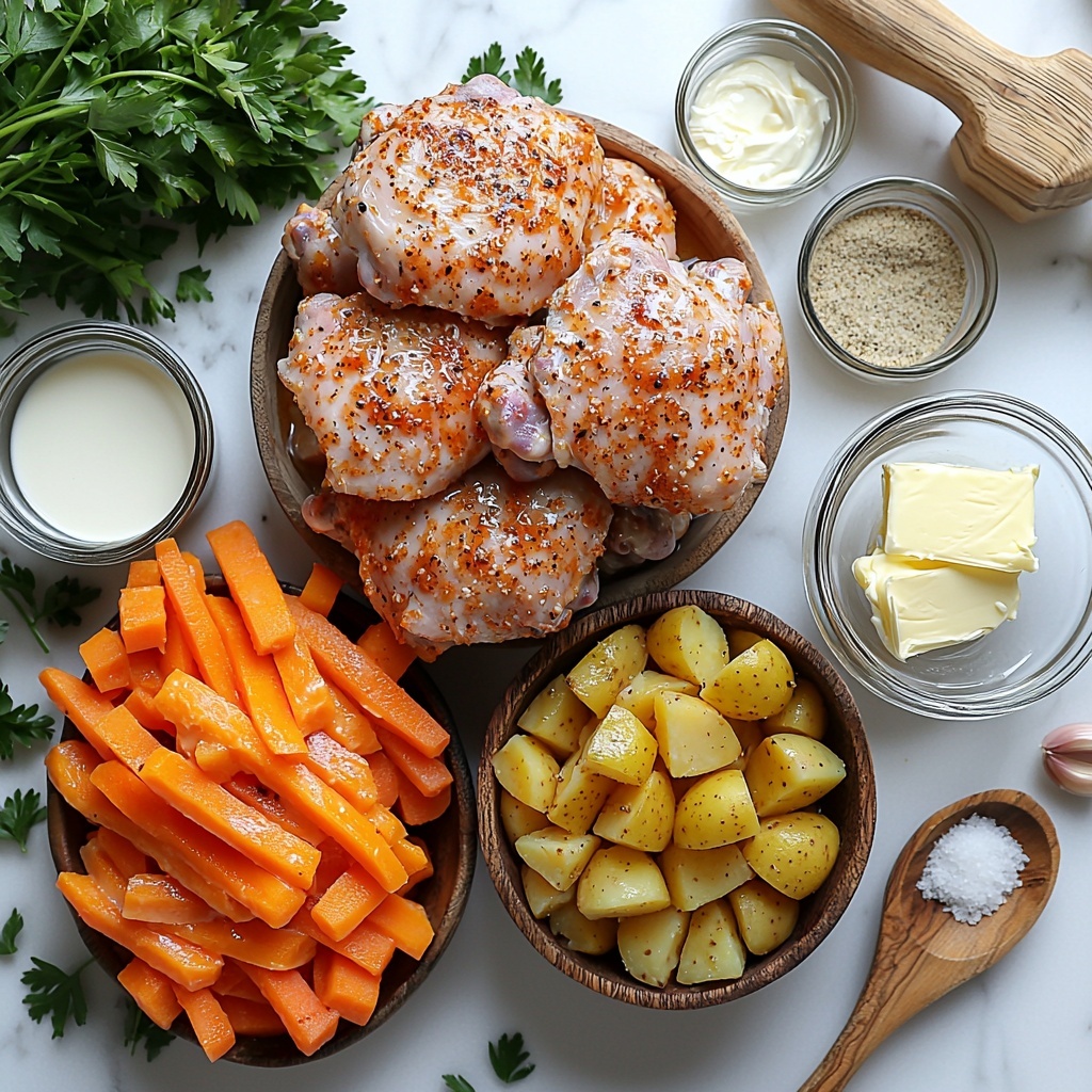 Gathering the right ingredients for the Slow Cooker Garlic Parmesan Chicken Stew Recipe is straightforward, yet each one plays a crucial role in building layers of taste, texture, and color. From earthy carrots and velvety potatoes to the sharp richness of Parmesan, these staples combine effortlessly to make magic happen in your slow cooker.