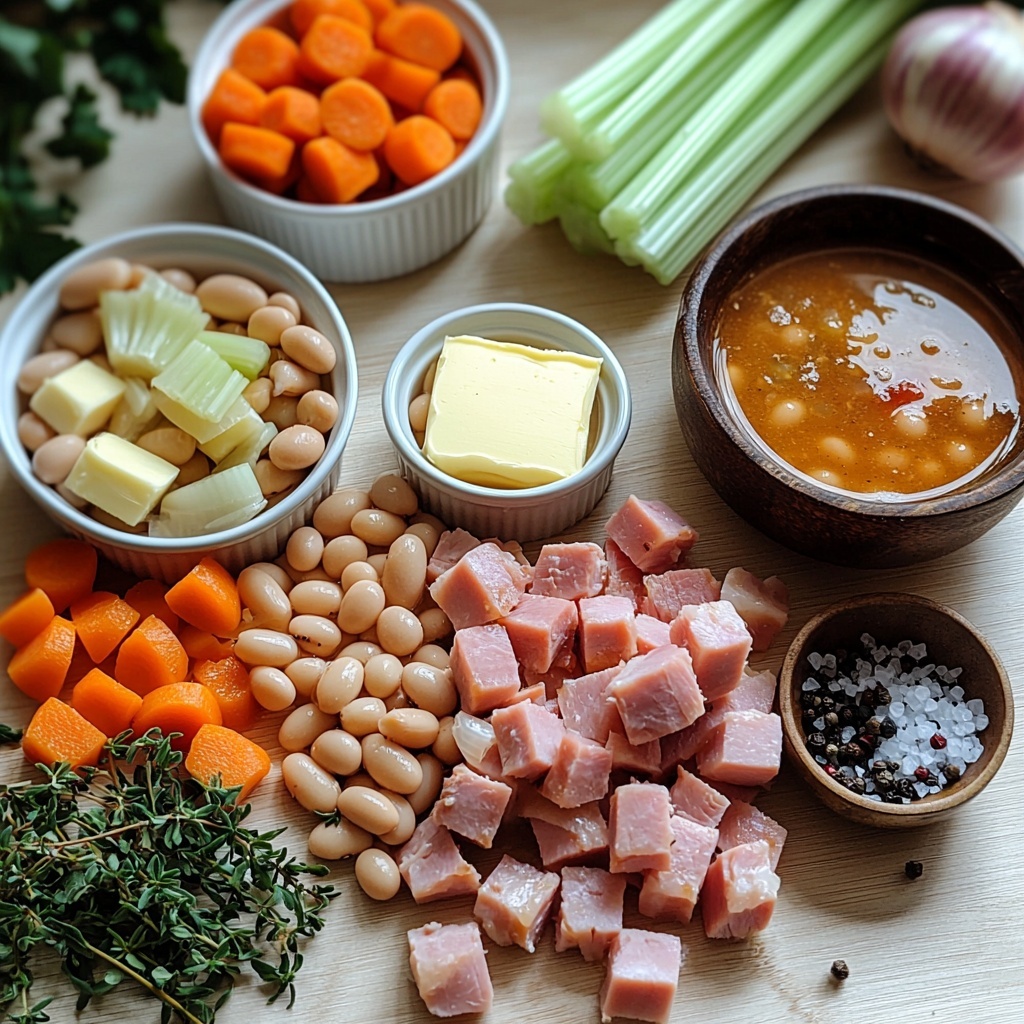 This Slow Cooker Ham and Bean Soup Recipe relies on simple, wholesome ingredients that each play an essential role in building layers of flavor and texture. From the savory ham to the earthy beans and fresh veggies, every component shines through in the finished dish.