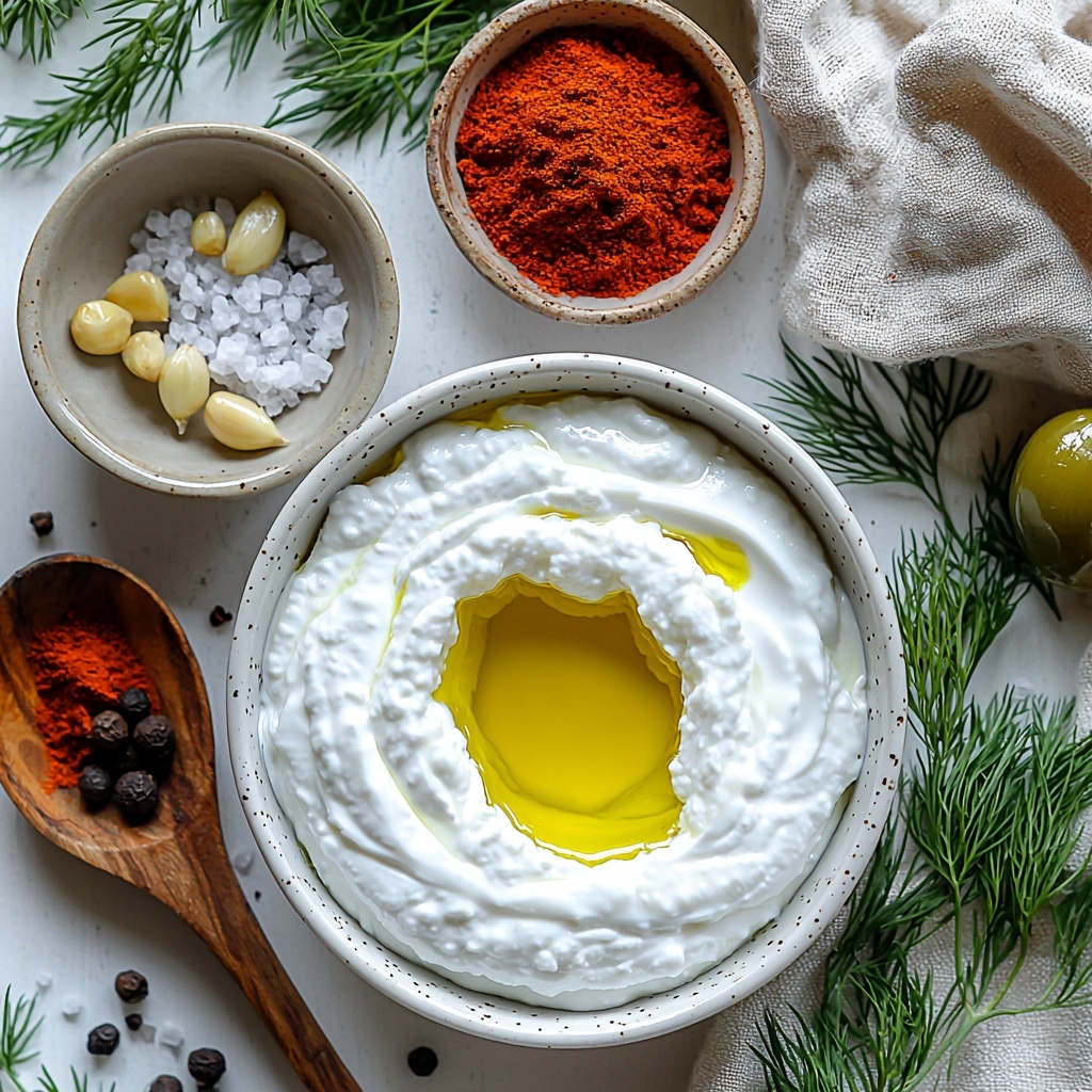 Next, line a fine mesh strainer with cheesecloth and place it over a bowl to catch the whey. Spoon the salted yogurt into the cheesecloth, fold the edges over, and pop it in the refrigerator. Let it drain gently for 24 to 48 hours—the longer you strain, the thicker and creamier your labneh becomes. The slow draining concentrates flavors and achieves that luscious spreadable texture you’re after.
