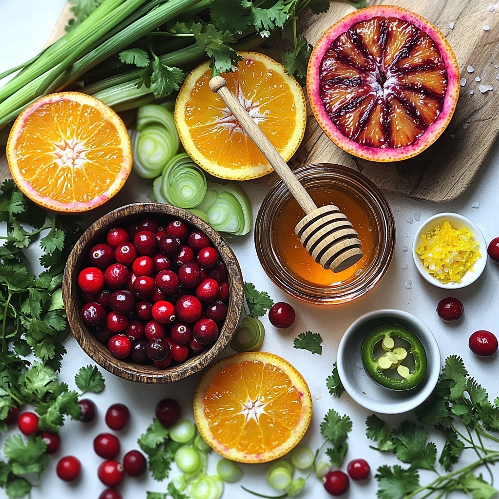 Start by gathering all your ingredients. If you’re using frozen cranberries, make sure to thaw them fully to ensure the best texture. Chop your cilantro finely, halve the green onions, and juice both the orange and lime before moving on to the blending stage. Having everything prepped will make the rest of the process smooth and quick.
