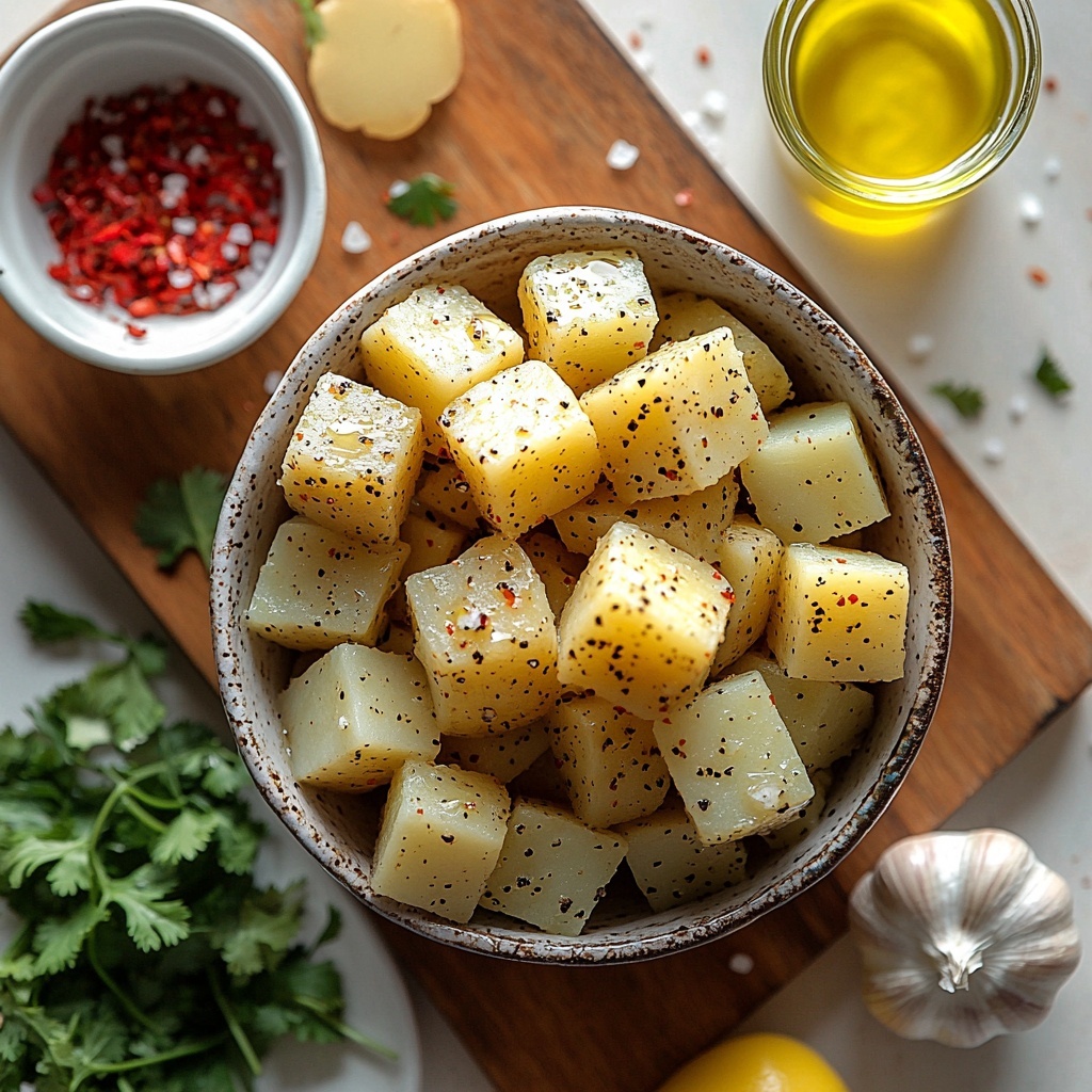 Begin by boiling your peeled and cubed potatoes in salted water for about 5 to 7 minutes. The goal here is to soften them slightly, not to cook them all the way through. This initial cooking helps ensure the potatoes become tender inside without falling apart as you crisp them up later.