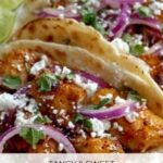 These Sticky Lime Honey Chicken Tacos feature juicy, bite-sized chicken pieces coated in a sweet and tangy lime and honey glaze. Cooked quickly in a skillet and served in warm tortillas with creamy avocado, tangy pickled red onion, fresh coriander, and crumbled feta, these tacos are bursting with vibrant flavors and perfect for a speedy weeknight meal.