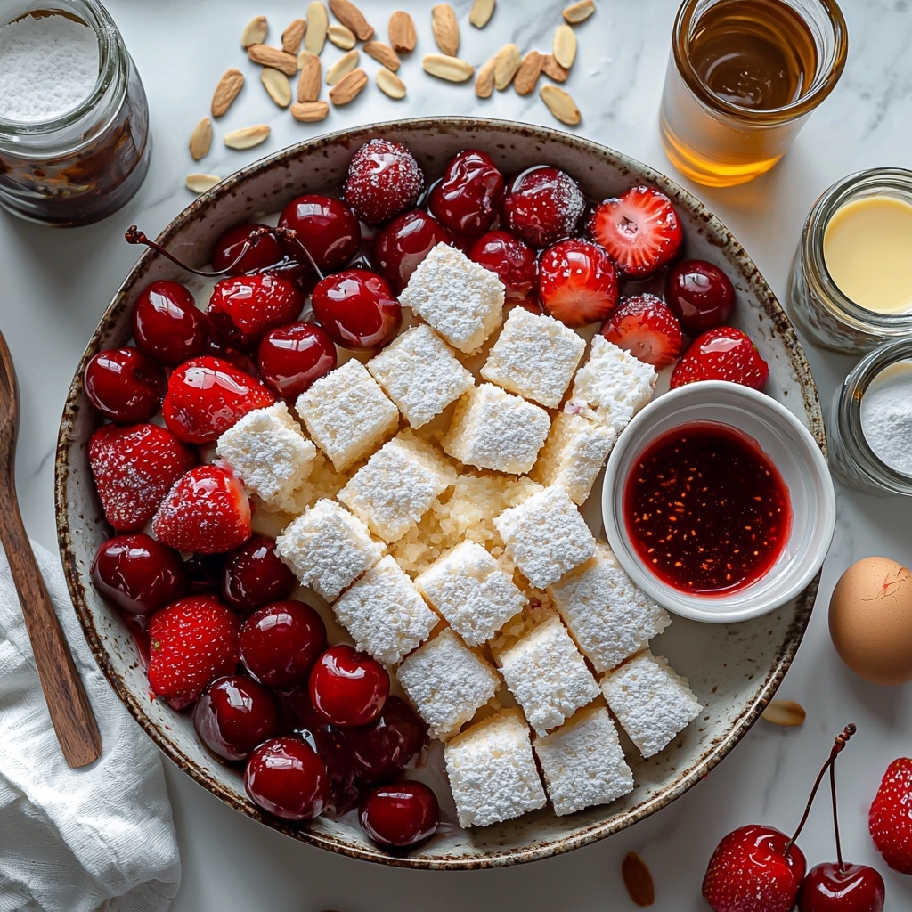 Start by baking the cake if you’re using a dry mix or a fresh angel food cake. Once the cake is cooled completely, cut it into convenient 1-inch cubes for easy layering. The cake cubes form the soft, spongy foundation that will soak up the lovely flavors from the other ingredients.