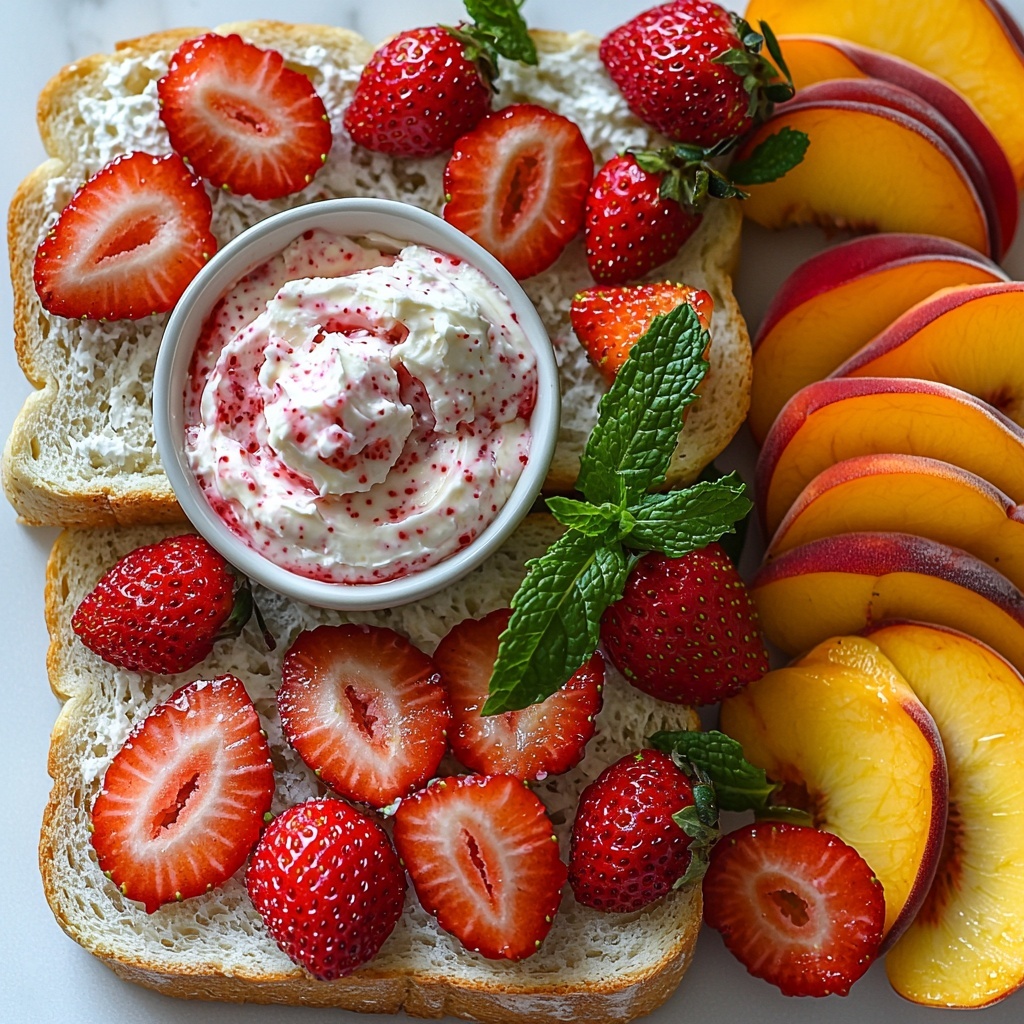 - Add fruit slices: Arrange thinly sliced fresh strawberries atop the cream cheese on half of the heart-shaped bread pieces. Optionally, add thin slices of peach for a different fruity taste.