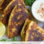 For a fun twist, slice the stuffed pita triangles and arrange them on a large sharing platter with colorful piles of garlic-tahini dip and pickled onions running alongside. This makes for an inviting meze-style spread that’s perfect for casual gatherings and sharing around the table.