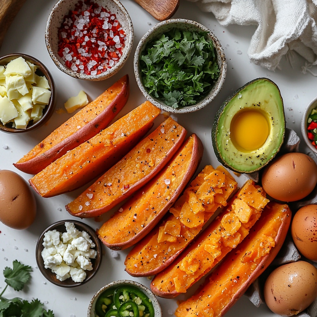 Start by preheating your oven to 400°F (200°C). Slice the sweet potatoes lengthwise, and carefully scoop out some of the flesh to create room for the egg and other toppings. Don’t toss the scooped sweet potato – you can save it for another recipe or mix it back in later! Brush the sweet potato halves with olive oil or butter, then season with salt and pepper for a simple yet essential flavor boost. Place each half face down on a baking sheet and roast for about 20 to 25 minutes until they’re tender and just starting to caramelize around the edges. This roasting step ensures your boats are perfectly soft but still hold their shape.
