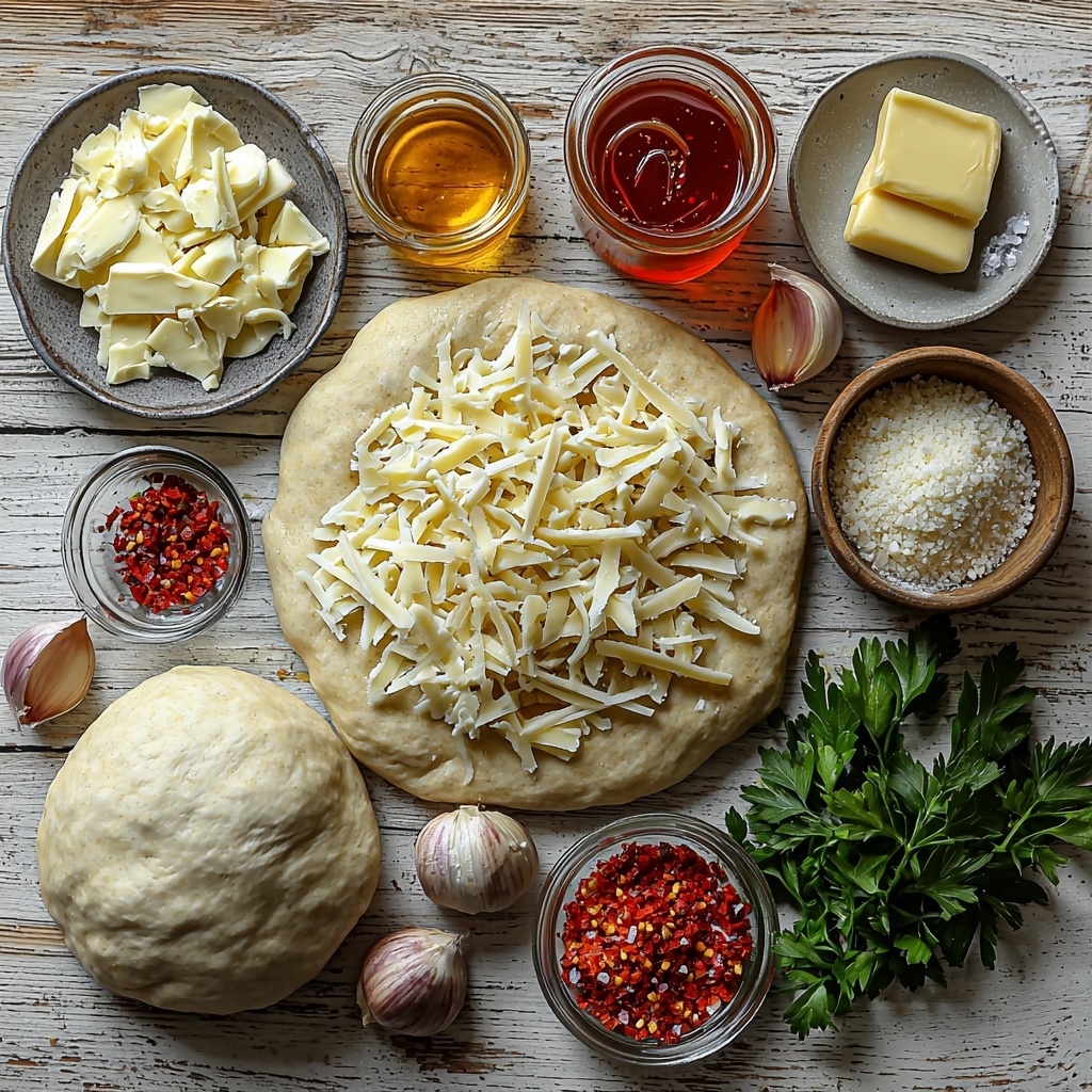 The beauty of this Sweet Spicy Hot Honey Garlic Pizza Recipe lies in its simplicity and how each ingredient plays a crucial role in achieving that perfect balance of flavors and textures. From the tender, crispy crust to the melty cheese and punchy honey sauce, let’s check out what you’ll need.