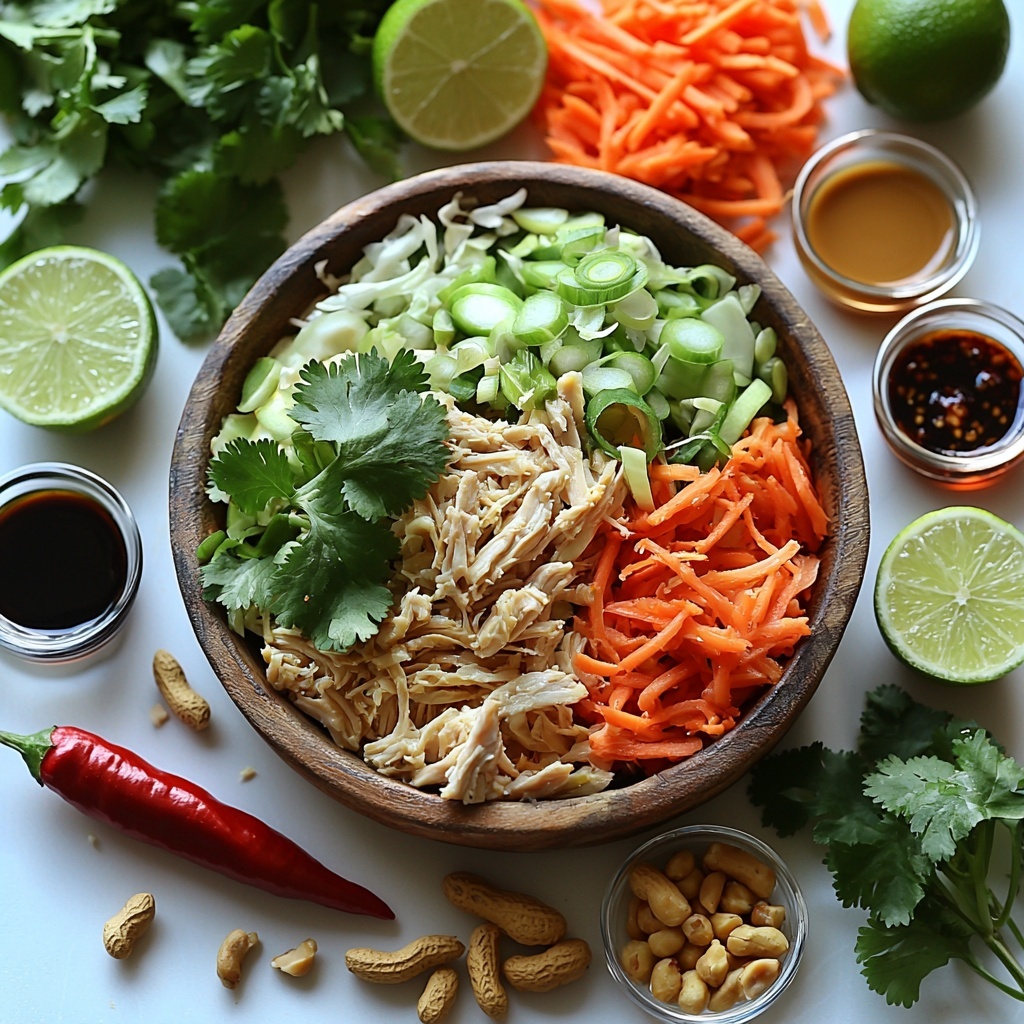 • Shredded cooked chicken: Provides lean, tender protein and soaks up the peanut dressing beautifully.