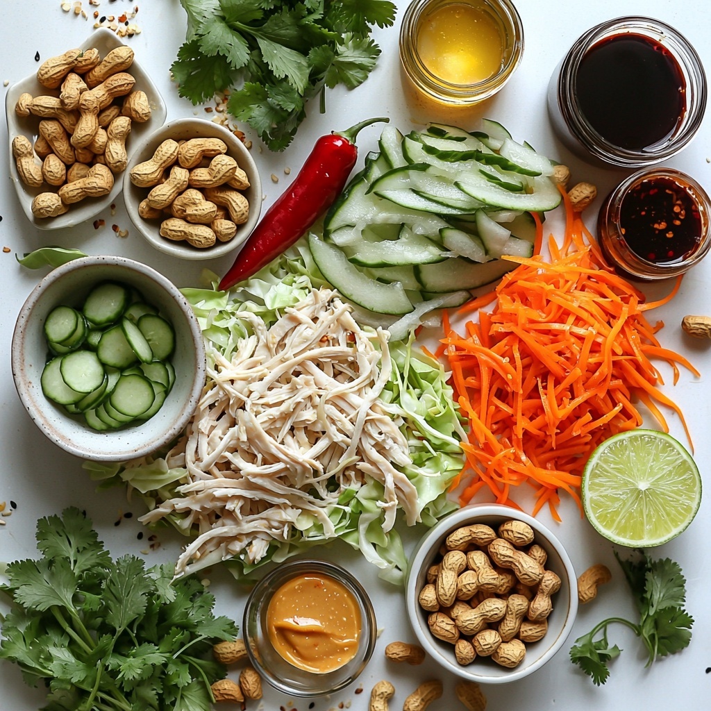 Getting the ingredients right for this Thai Peanut Chicken Salad Recipe is a breeze, yet every component plays a crucial role. From crunchy peanuts adding texture to the spicy chili peppers providing that signature zing, these simple staples come together to create a sensational taste experience.