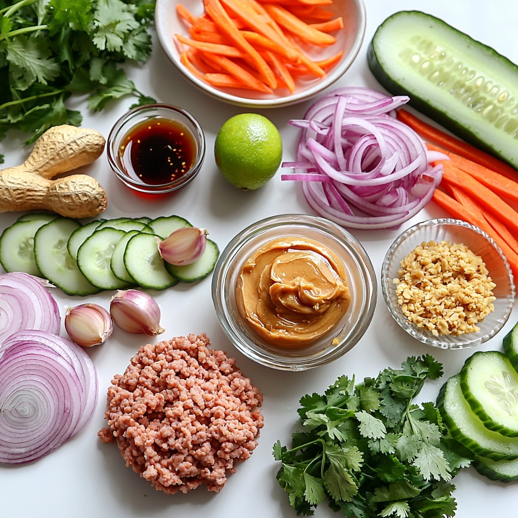These ingredients are straightforward, but each one plays an important role, combining to create a flavorful, moist turkey burger with a delicious Thai-inspired peanut sauce. The freshness from herbs and spices complements the creamy peanut butter and crisp veggies, giving you a perfectly balanced bite every time.