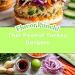 Delicious Thai Peanut Turkey Burgers combining juicy ground turkey patties infused with fresh herbs and spices, topped with a creamy, tangy peanut sauce, and fresh crisp vegetables for a flavorful twist on the classic burger.