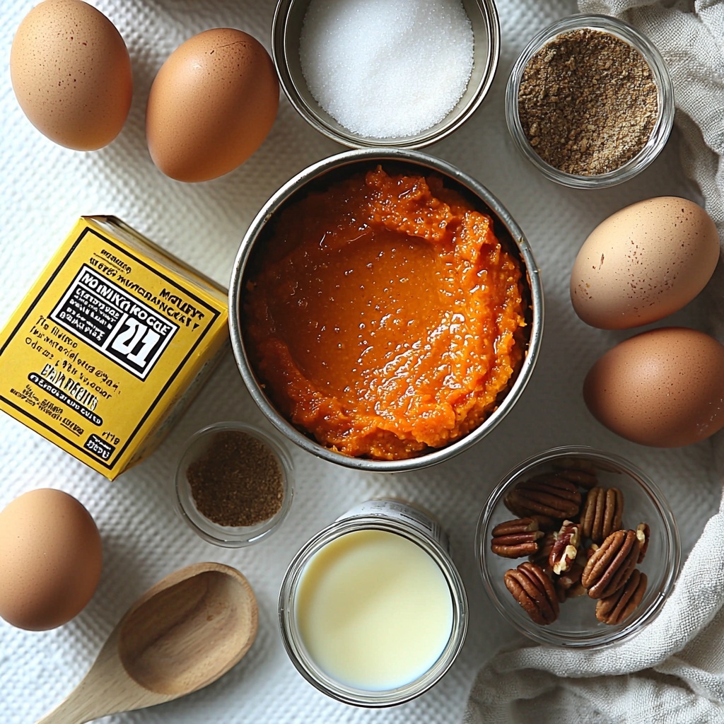 - Pumpkin puree (1 can, 15 oz): The rich, velvety heart of this dessert, delivering that unmistakable pumpkin flavor and moist texture.