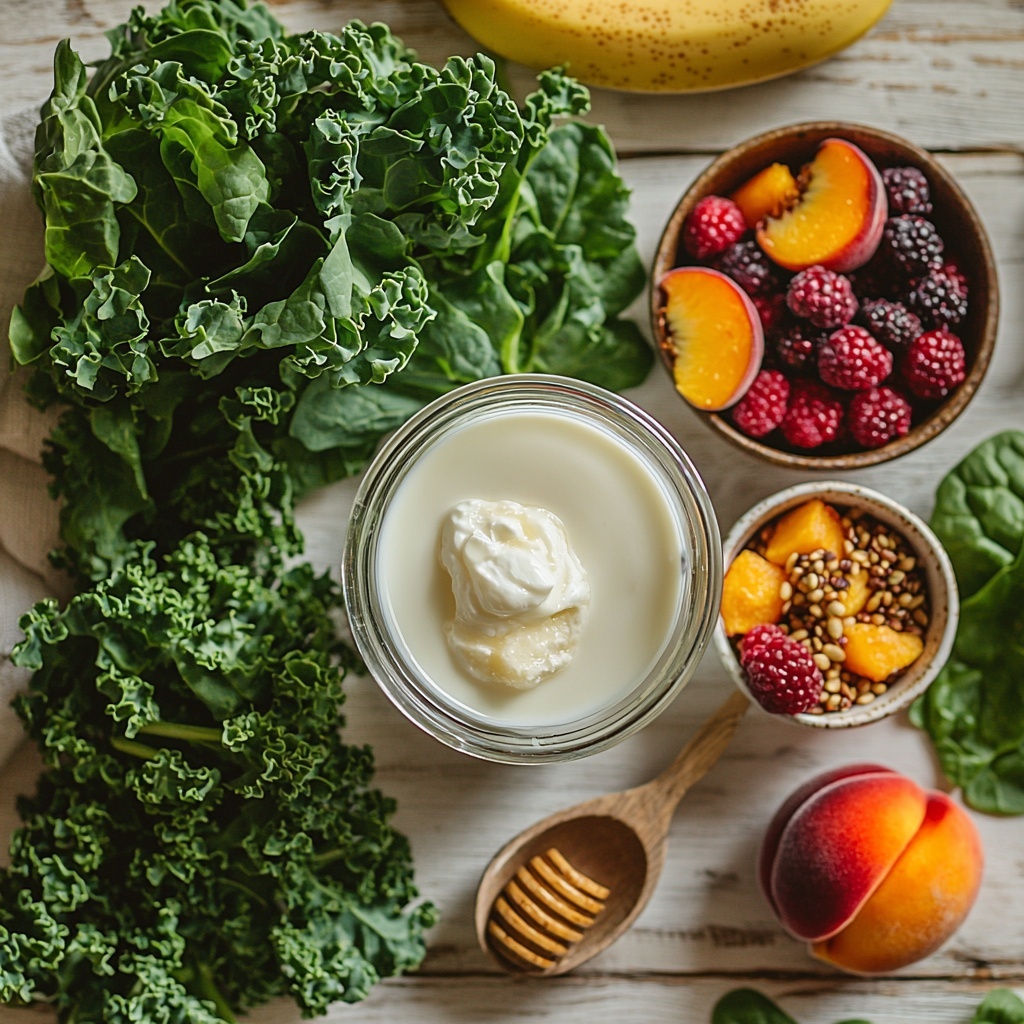 • 1 cup fresh baby greens (spinach, kale): These stealthy nutrient boosters give your smoothie a beautiful green hue without overpowering the flavor.