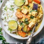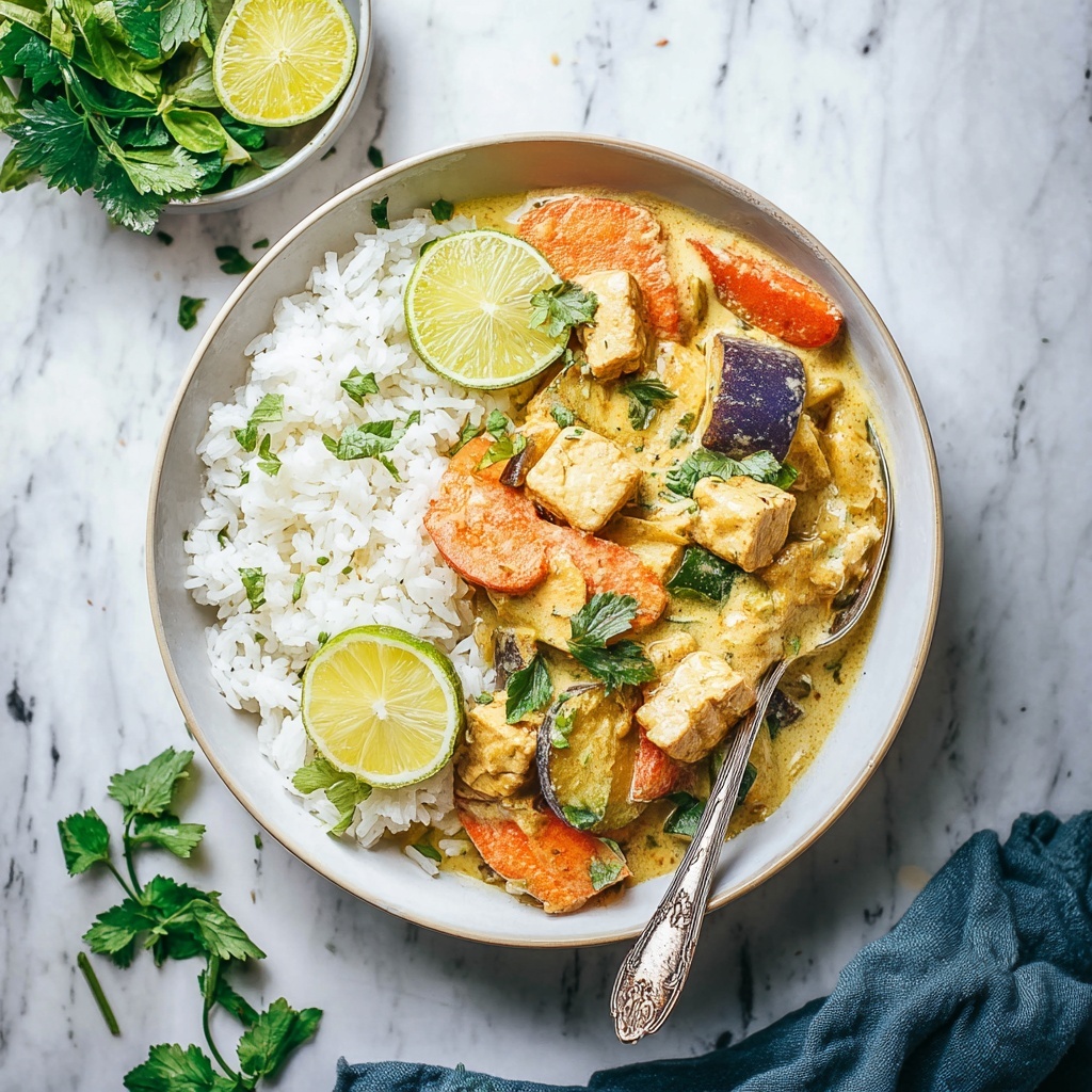A sprinkle of fresh cilantro or Thai basil over the top elevates both the appearance and flavor, giving each bite a fragrant lift. A lime wedge on the side invites everyone to add an extra splash of citrus zing. For those who enjoy more heat, a drizzle of Sriracha adds a playful spicy kick that complements the creamy curry sauce beautifully.