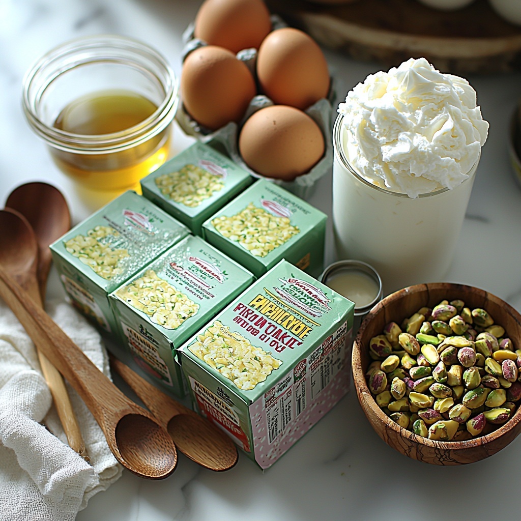Getting started with the Tropical Pistachio Bliss Cake Recipe is a breeze since it calls for simple ingredients that each play a crucial role in building the cake’s irresistible flavor and texture. From the angel food cake mix delivering that perfect light crumb to the pistachio pudding adding creamy nuttiness, these components come together beautifully.