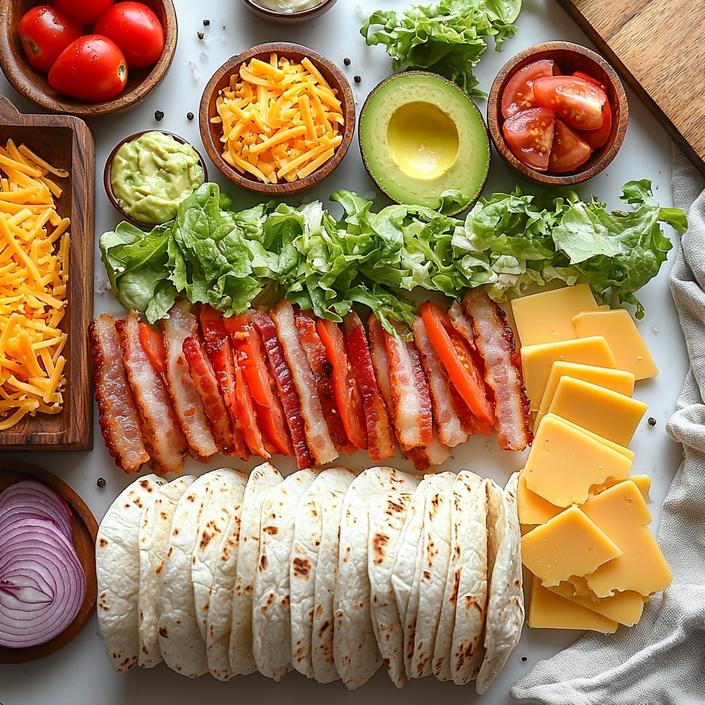 Getting your hands on a fresh, straightforward lineup of ingredients is the secret to making this wrap truly shine. Each component brings its own charm—whether it’s the creamy avocado, the smoky bacon, or the crunchy lettuce—creating a perfect balance in every bite.