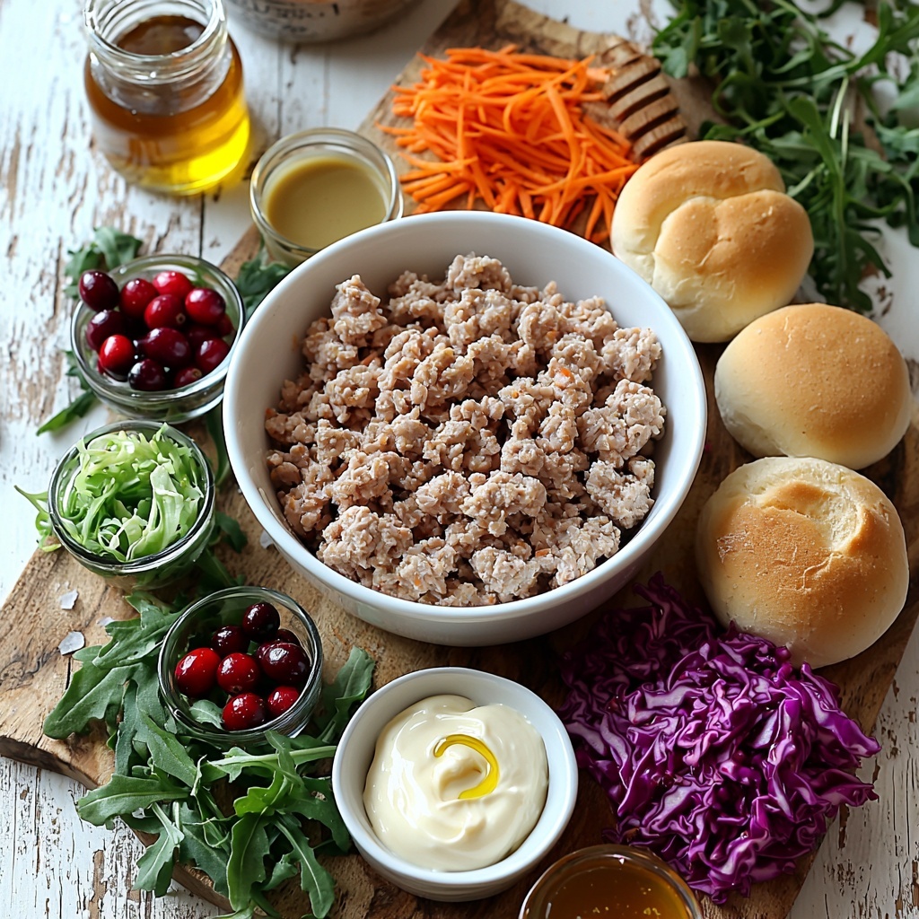 These ingredients are straightforward but essential, each adding a special touch that builds layers of flavor, texture, and color in the Turkey Sliders with Cranberry Slaw Recipe. From the lean ground turkey that keeps the sliders juicy, to the crisp cabbage and tart cranberries that brighten the slaw, every component plays a starring role.