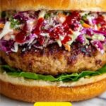 Place each warm turkey patty on the bottom half of a toasted bun. Pile generously with the chilled cranberry slaw you prepared earlier, and if you’d like, add a few baby arugula or lettuce leaves for an extra burst of freshness. Cap with the top bun and serve immediately while still warm and juicy. Every bite offers a perfect balance of savory, sweet, tangy, and crunchy.