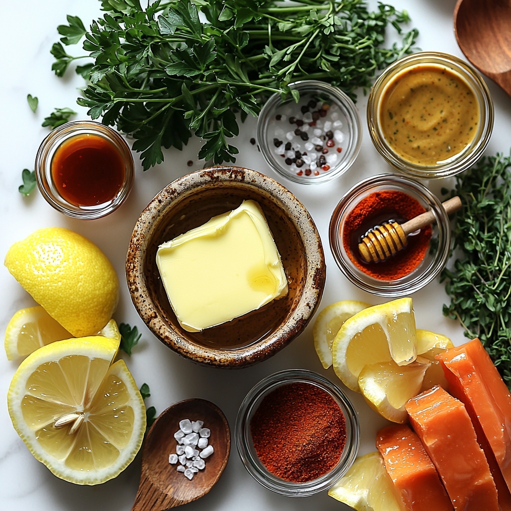 This recipe calls for simple pantry-friendly ingredients, each playing an indispensable role in crafting a butter bursting with layers of flavor and fresh vibrance. Combining the creamy richness of unsalted butter with bright lemon juice and the complex tang of Dijon and whole grain mustards creates the perfect base. Aromatics like garlic and smoked paprika add warmth and depth, while fresh herbs bring a wonderful lively finish.
