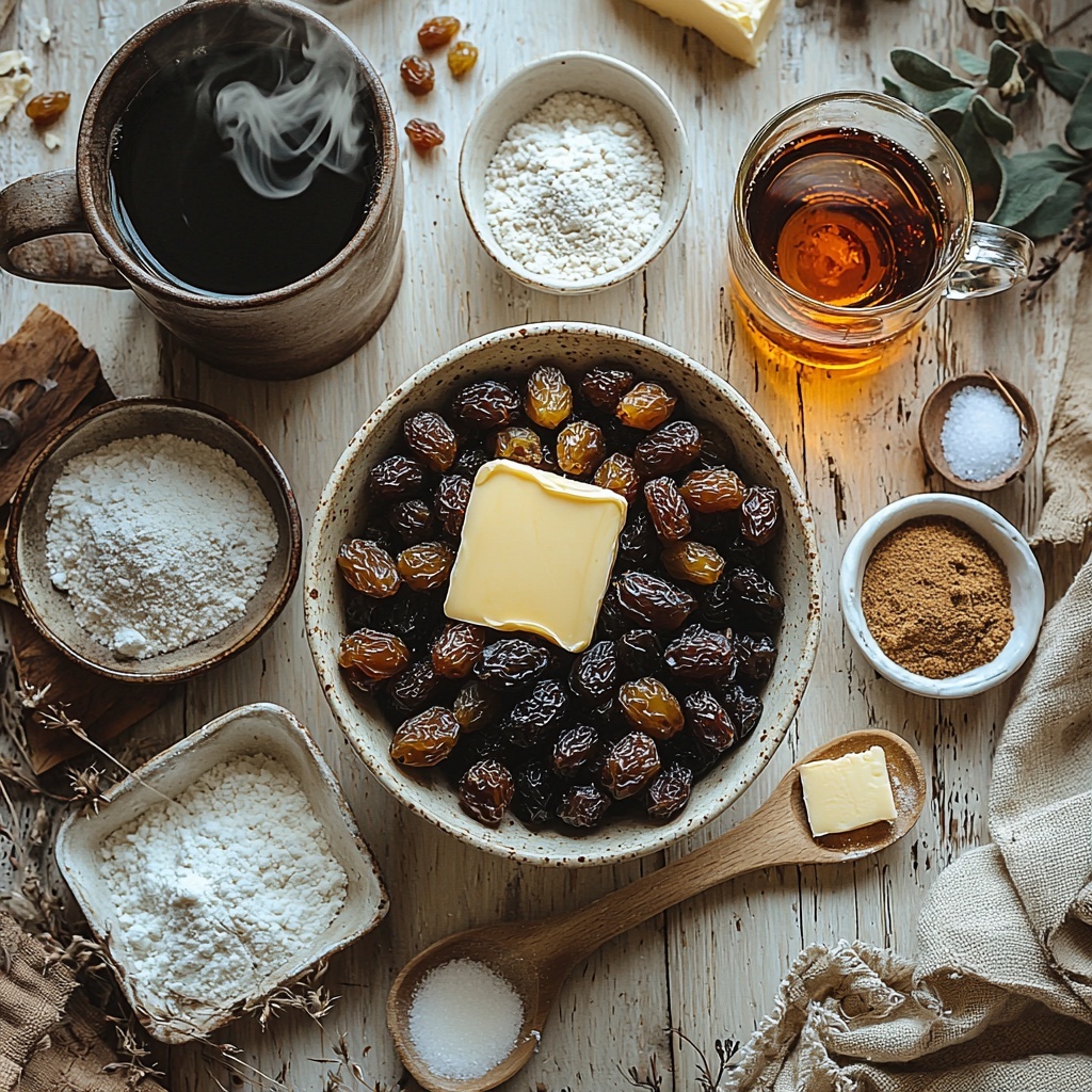 Creating this Vegan Irish Barmbrack (Fruit Loaf) Recipe is a breeze, thanks to its simple yet essential ingredients. Each element plays a special role: from the strong brewed tea soaking the fruit and infusing the loaf with richness, to the warming spices that create that classic Irish flavor profile.