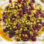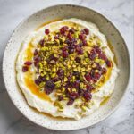 Spread the whipped feta mixture evenly on a serving plate or in a shallow bowl. Then, drizzle the warmed honey generously across the top. Finally, sprinkle over your toasted pistachios and dried cranberries for that stunning, colorful finish.
