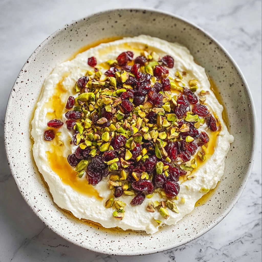 - Assemble the Dip: Spread the whipped feta mixture evenly onto a serving plate or shallow bowl. Drizzle the warmed honey generously over the top, then sprinkle with the toasted pistachios and dried cranberries for texture and flavor contrast.